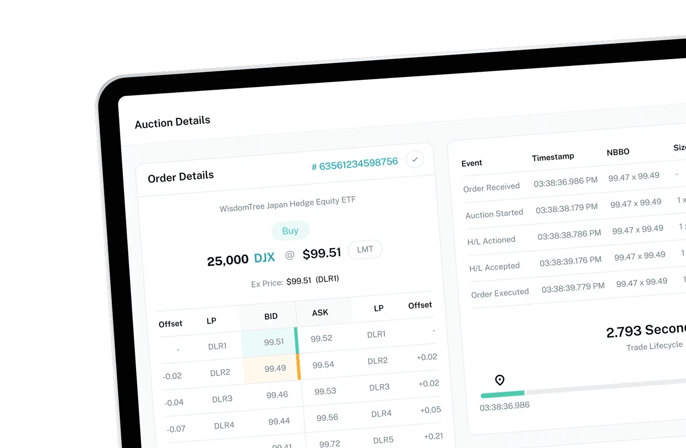 aRFQ™ runs an auction where liquidity providers compete with updated prices until client parameters are satisfied.